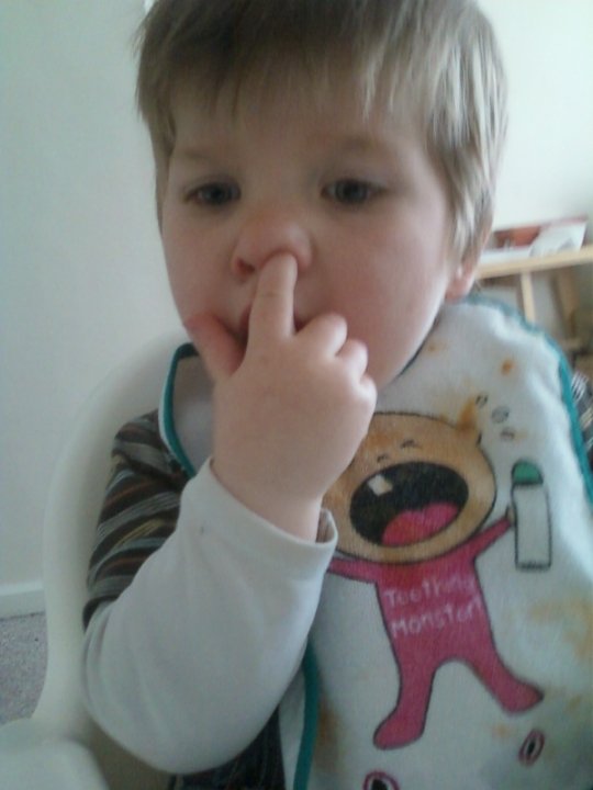 Now, on to the important stuff. Pwd has made a minor – major to us – breakthrough with his eating. He never liked to touch food with his hands and refuses to let food laden cutlery into his mouth. Over the last few months he had started to poke his food with a finger and this week picked up some toast, tore a piece off and ate it! Good one Pwdin Bach!